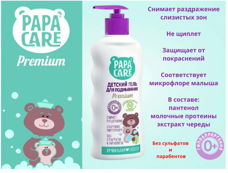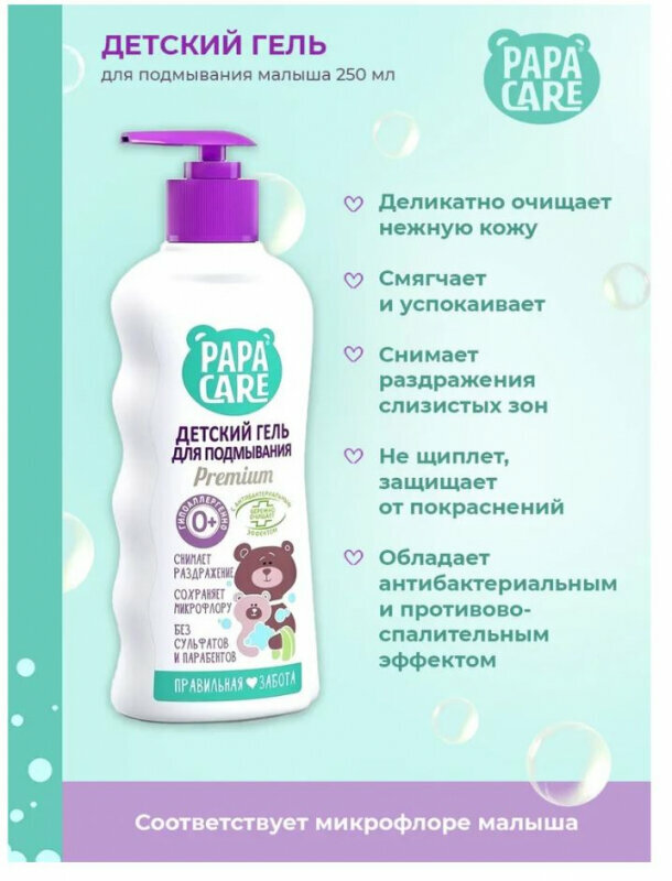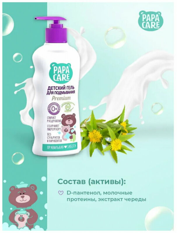 Papa Care PC06-00470 Гель для подмывания малыша с пантенолом, молочными протеинами и экстрактом череды интересное: