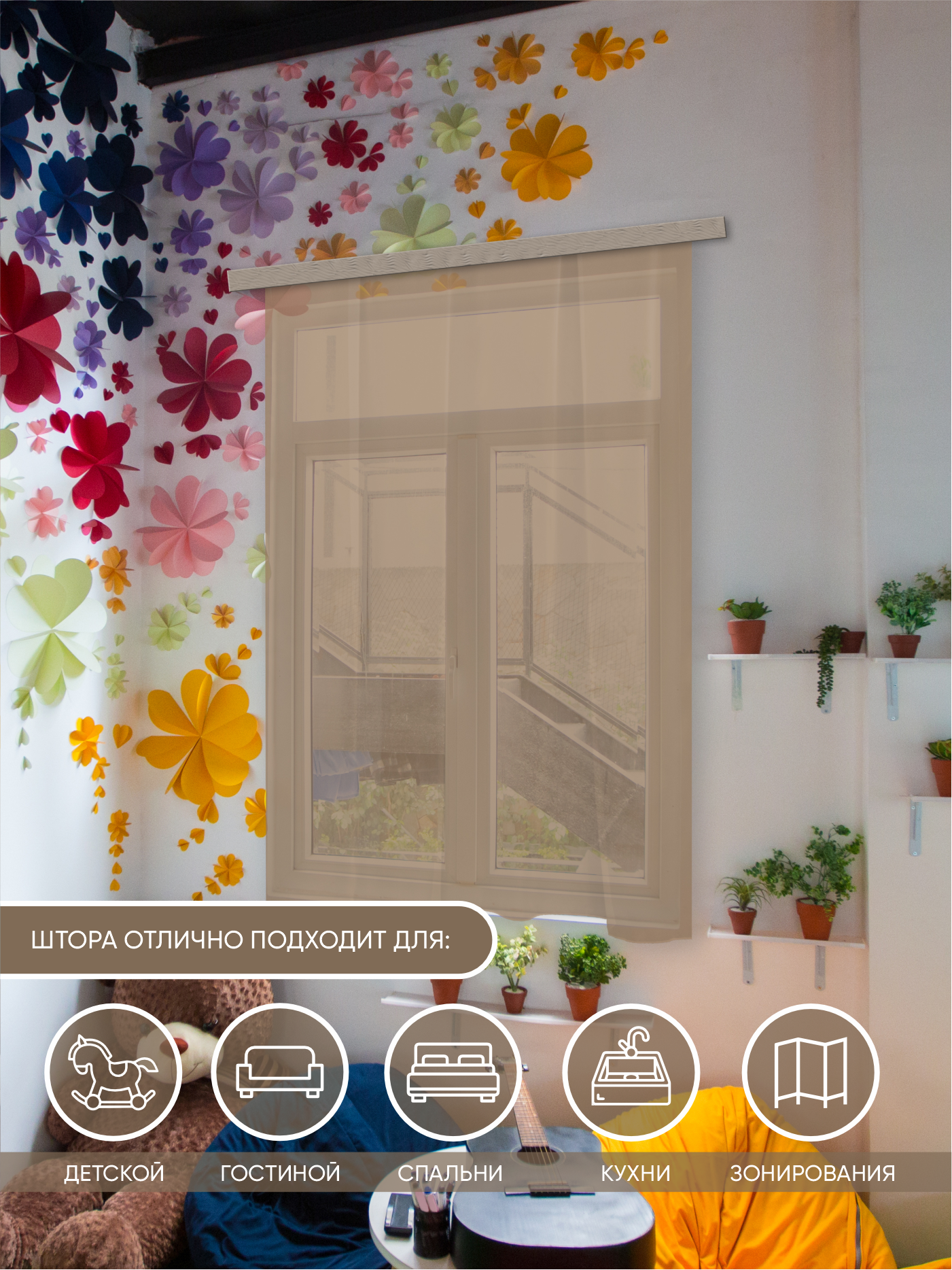 Штора-тюль для кухни Witerra 140х145см, шампань, вуаль, пэ100%