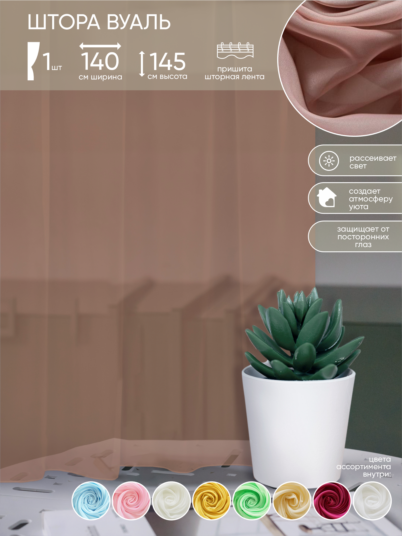 Штора вуаль однотонная 140 145 см, цвет персик, 100 п/э