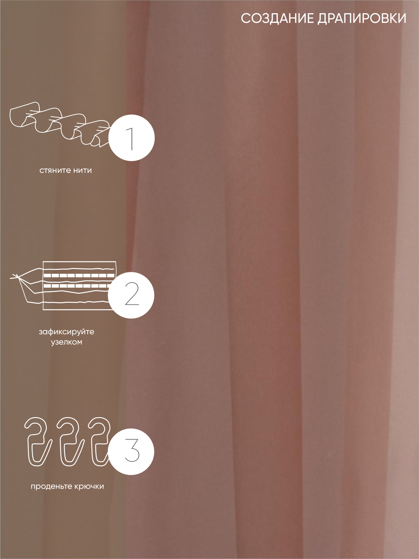 Штора-вуаль Witerra тюль на шторной ленте, для потолочного и круглого карнизов 140х145 см, какао, 1 шт.