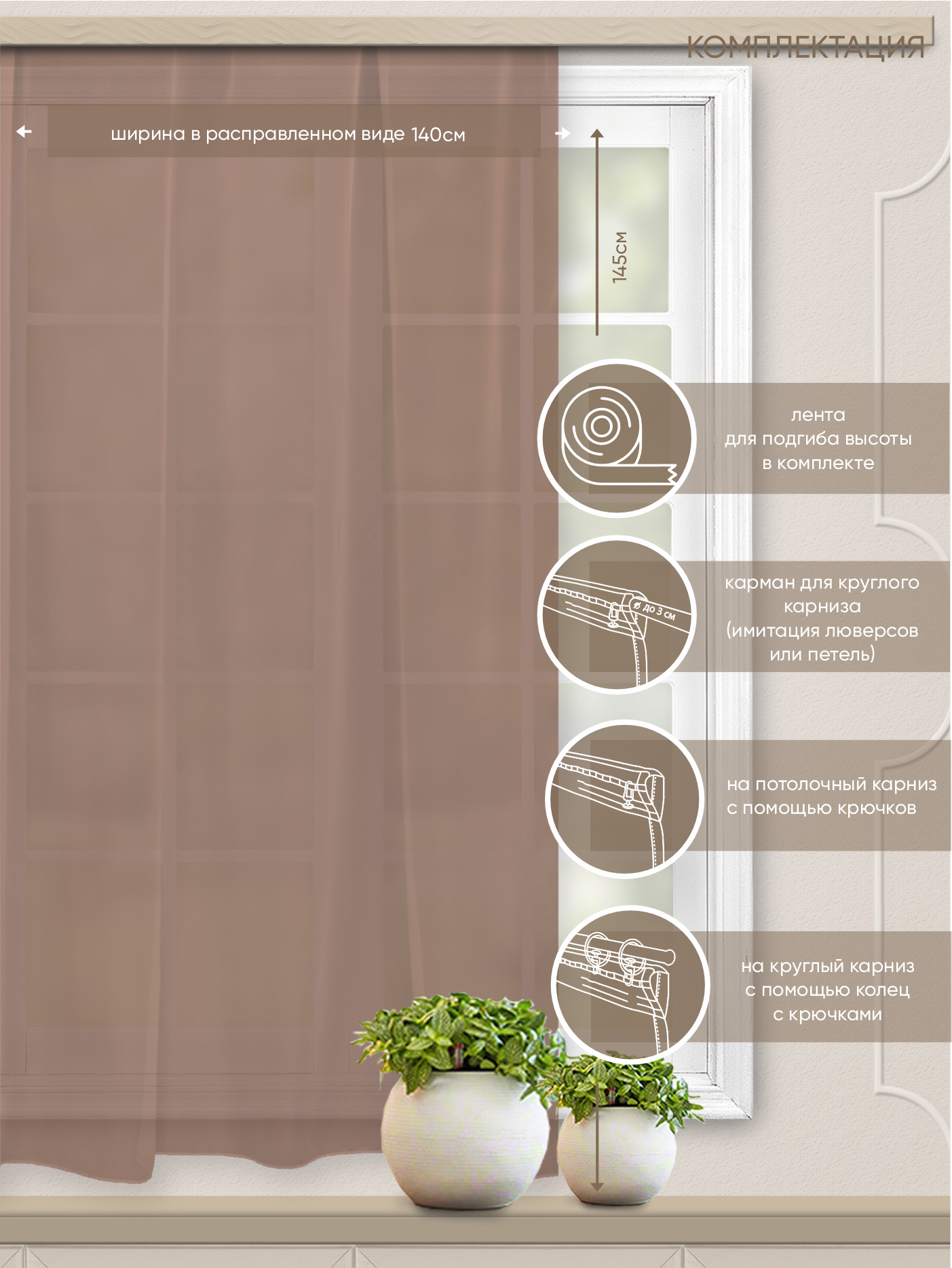 СохранитьШтора Witerra вуаль 140*145 см какао -1шт интересное: