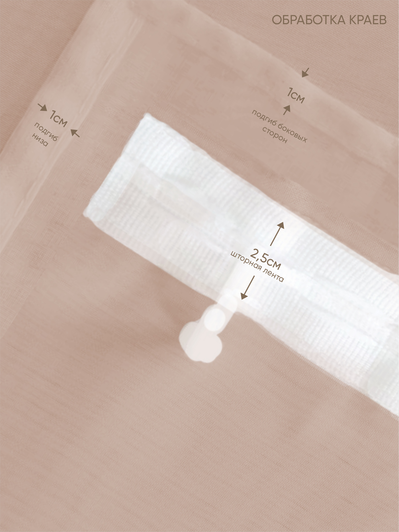 | Плюсы: | Отличная вуаль со шторной лентой, прошито качественно, неплохая обработка края. |