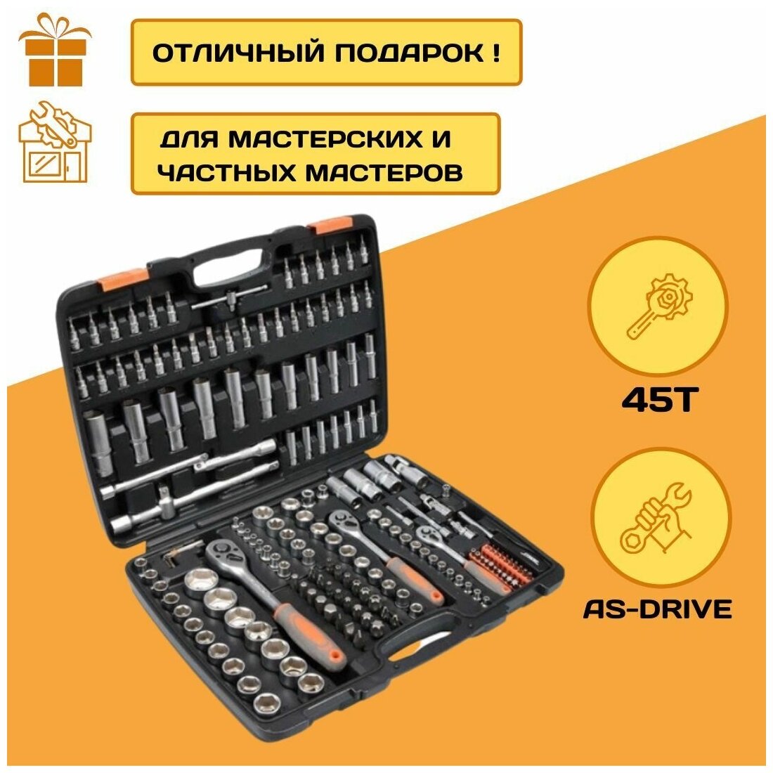Набор инструмента STHOR 173 предм, 1/2", 3/8", 1/4", CrV, 45T, AS-DRIVE, 58688 Отличный подарок