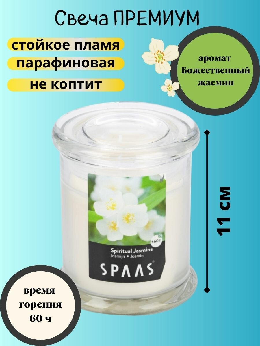 Свеча в стакане SPAAS арома премиум Божественный жасмин 0547016577 9/11см, 60 часов, белый интересное: