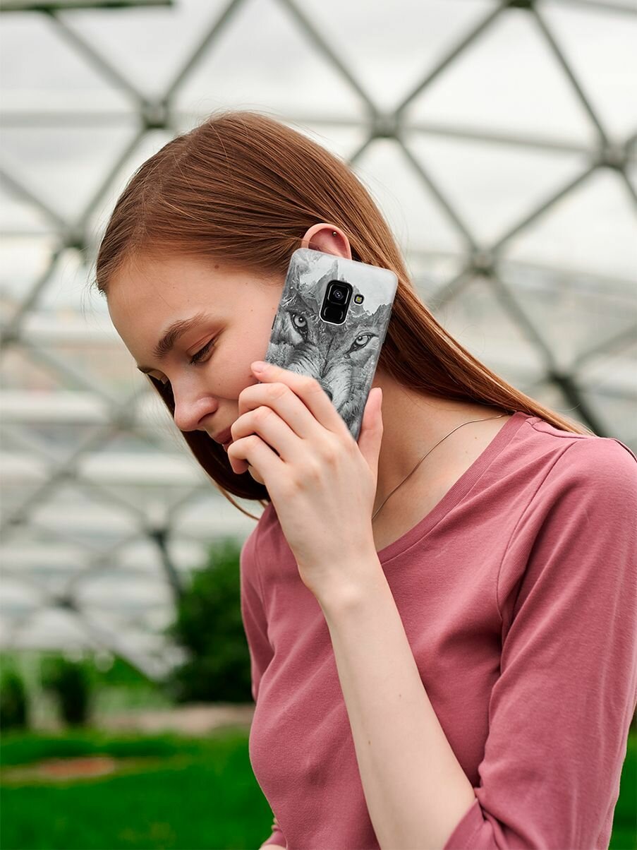 Cиликоновый прозрачный чехол ArtColor для Samsung Galaxy A8 (2018) SM-A530 с принтом "Волк в горах" интересное: