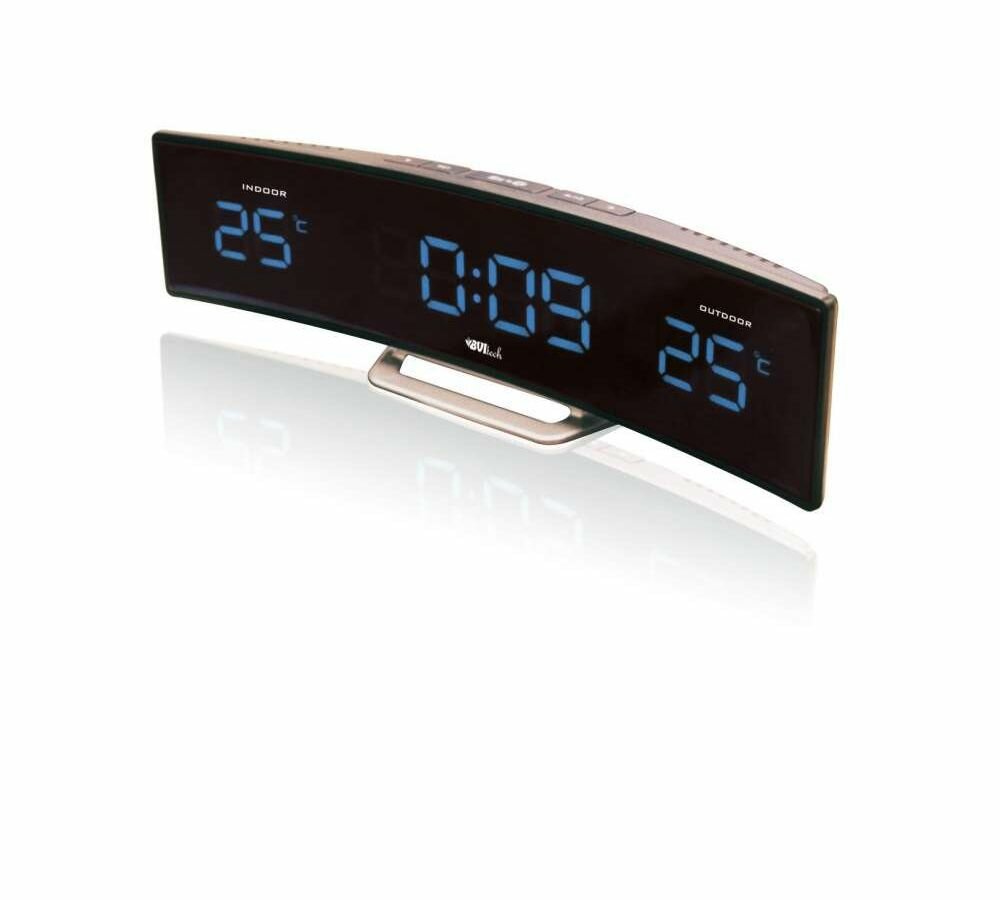 | Плюсы: | Мне понравился дизайн и качество сборки - есть металлические детали. Изогнутая форма вписалась под телевизор! Цифры большие и яркие! Пока прибор показывает точное время, погоду иногда за бортом завышает ... |
