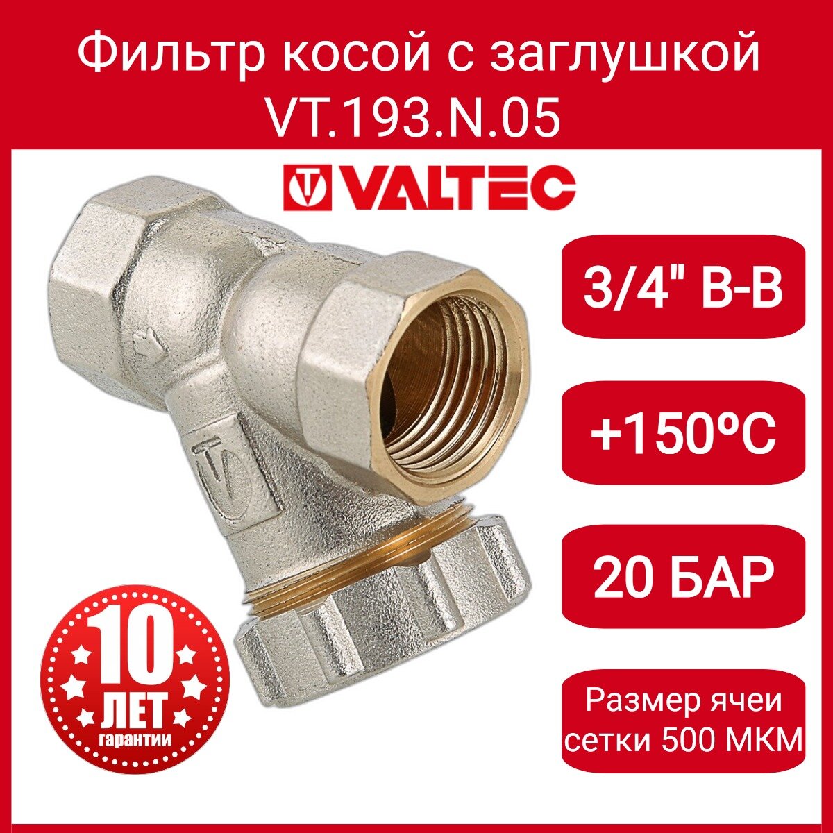 Фильтр косой VALTEC (VT.193.N.05) 3/4 ВР(г) х 3/4 ВР(г) с заглушкой