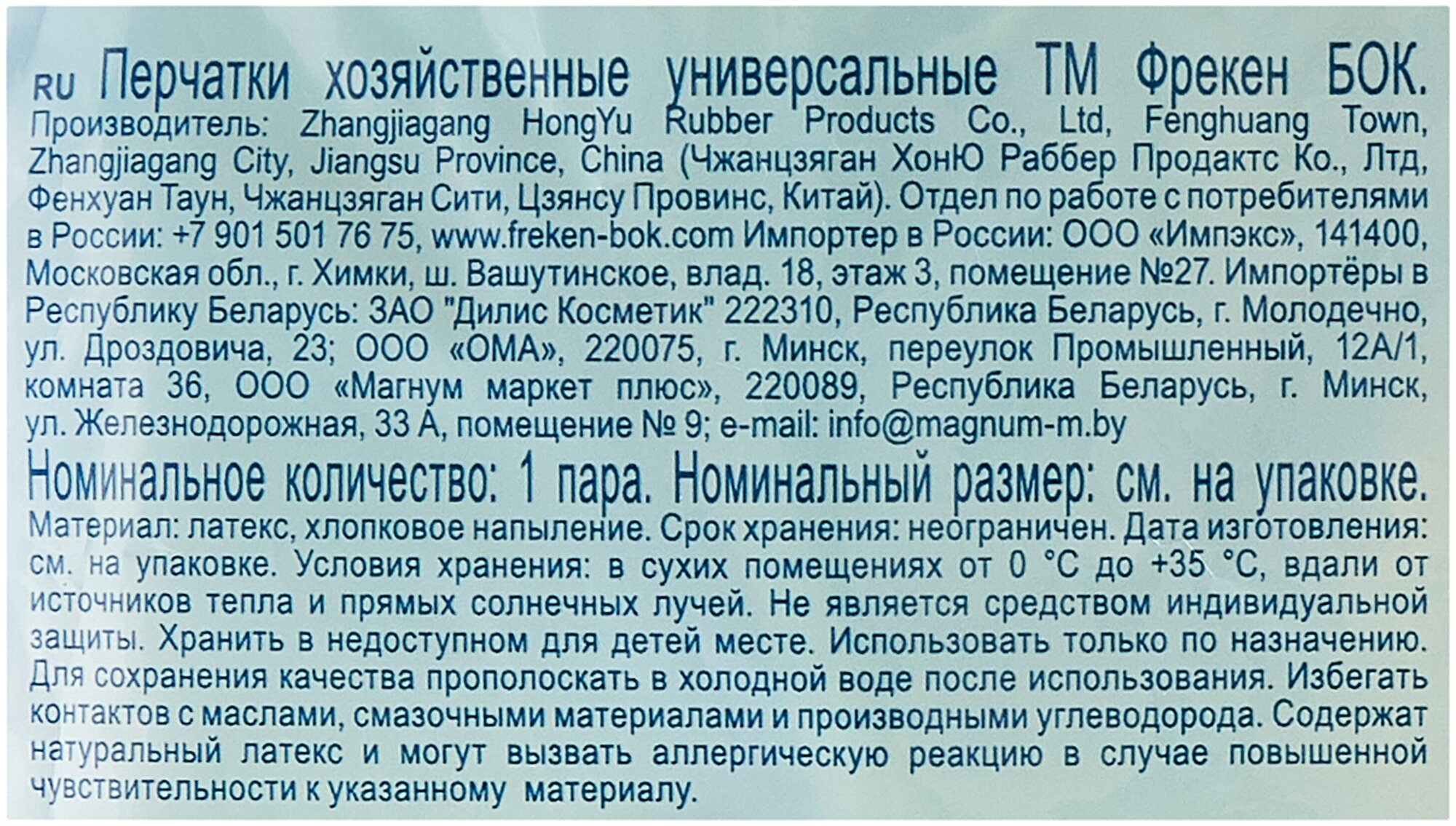 Фрекен БОК Перчатки хозяйственные универсальные для мытья посуды удлиненные (Количество 2 г)