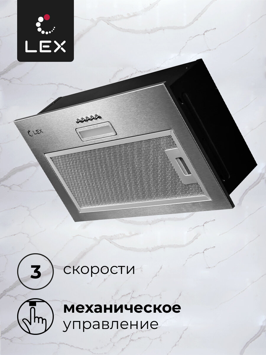 Вытяжка встраиваемая Lex GS Bloc LIGHT 600 INOX нержавеющая сталь управление: кнопочное (1 мотор)