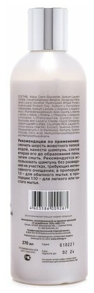 | Плюсы: | Аллергии и раздражений нет. Хорошо промывает длинную шерсть. Запах не навязчивый, спокойный, нежный |