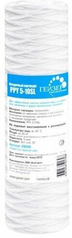 Полипропиленовый картридж механической очистки / полипропиленовая нить Гейзер PPY 5 для холодной воды - 10SL, 28048 - 1 шт.
