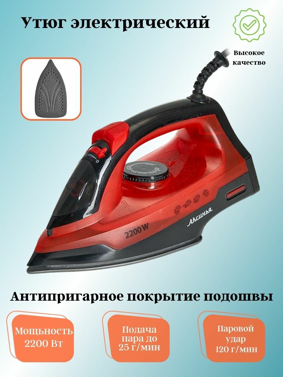 Утюг Аксинья КС-3004 2200Вт черный/красный .