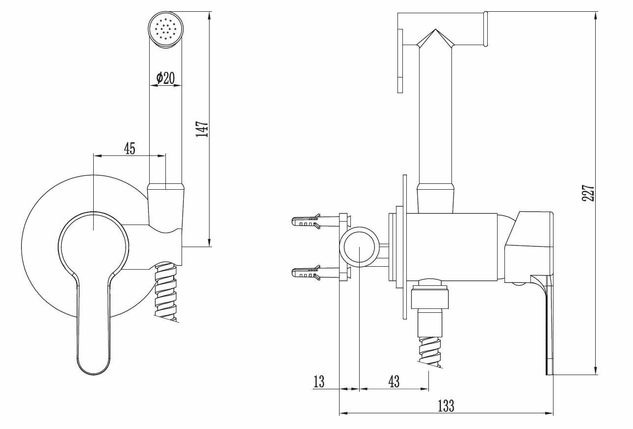 Смеситель скрытого монтажа с гигиеническим душем, арт. SMH01 ESKO