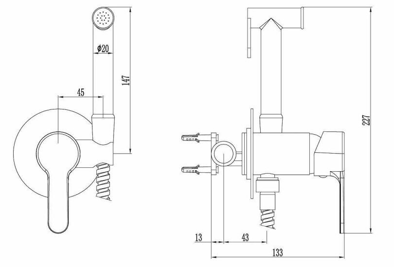 Смеситель скрытого монтажа ESKO с гиеническим душем (SMH01)
