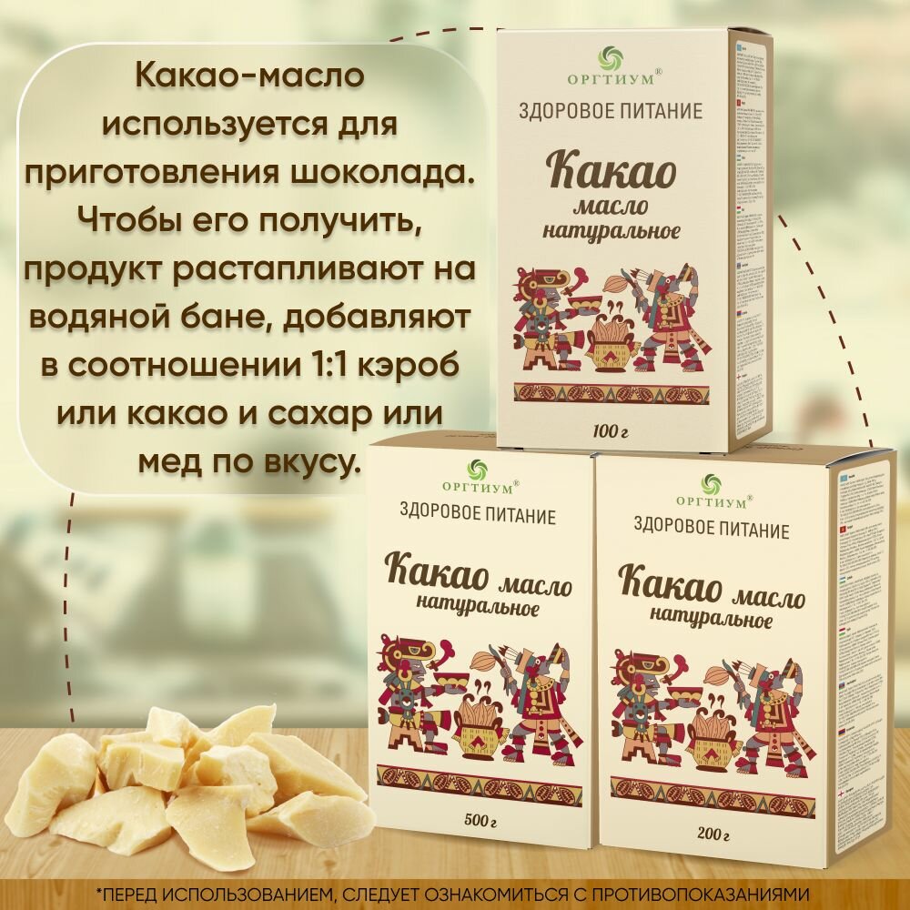Какао масло натуральное, 100г, Оргтиум