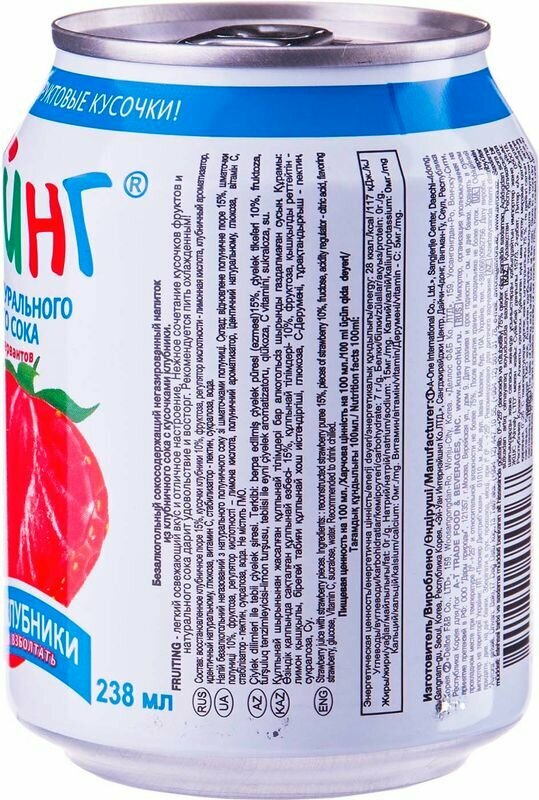Напиток сокосодержащий Фрутинг из клубничного сока с кусочками клубники, без сахара, 0.238 л интересное: