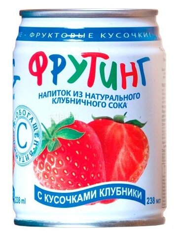 Ниже Вы можете прочитать отзывы на Напиток сокосодержащий Фрутинг из клубничного сока с кусочками клубники, без сахара, 0.238 л, ознакомится с подробными характеристиками, посмотреть интересные обзоры и фотографии на Напиток сокосодержащий Фрутинг из клубничного сока с кусочками клубники, без сахара, 0.238 л.