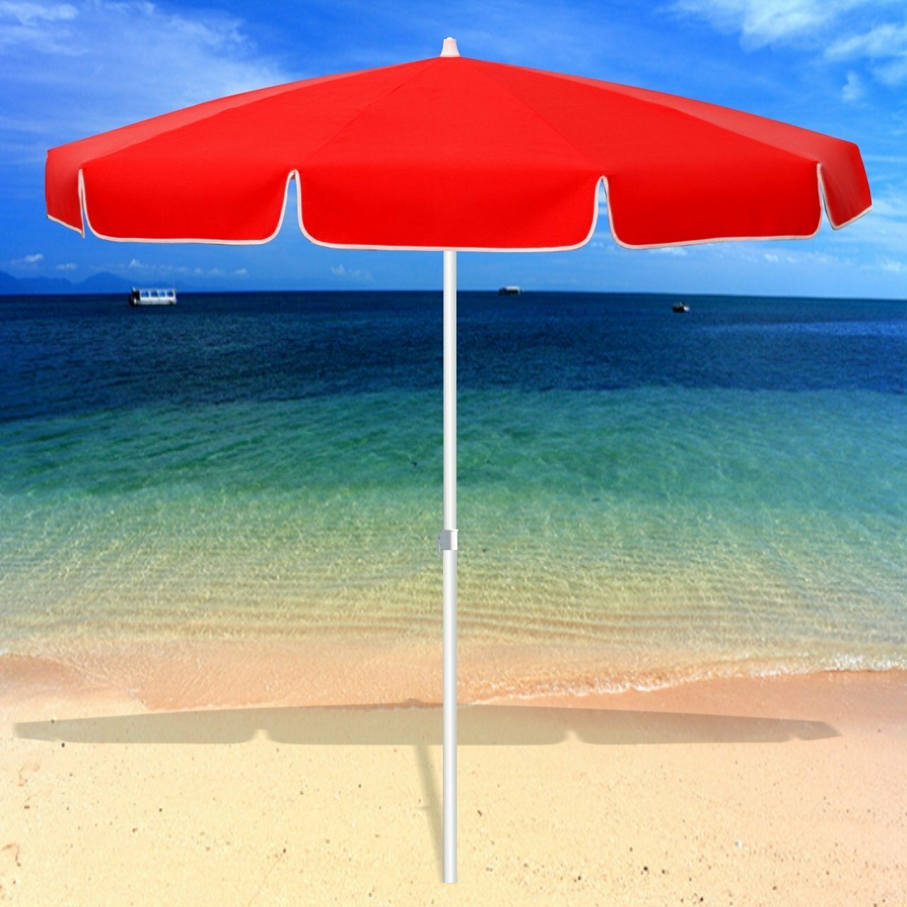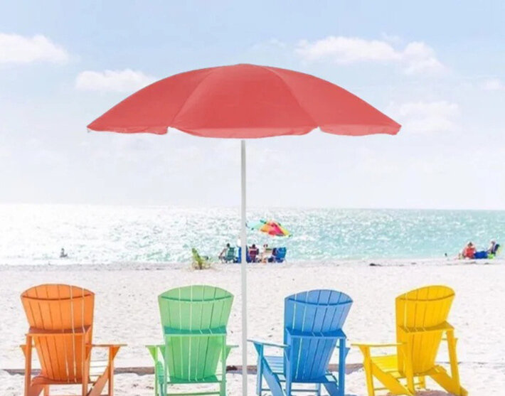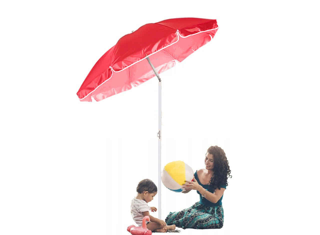 Зонт пляжный Ecos BU-69 с наклоном, диаметр 165 см, складная штанга 190 см, красный