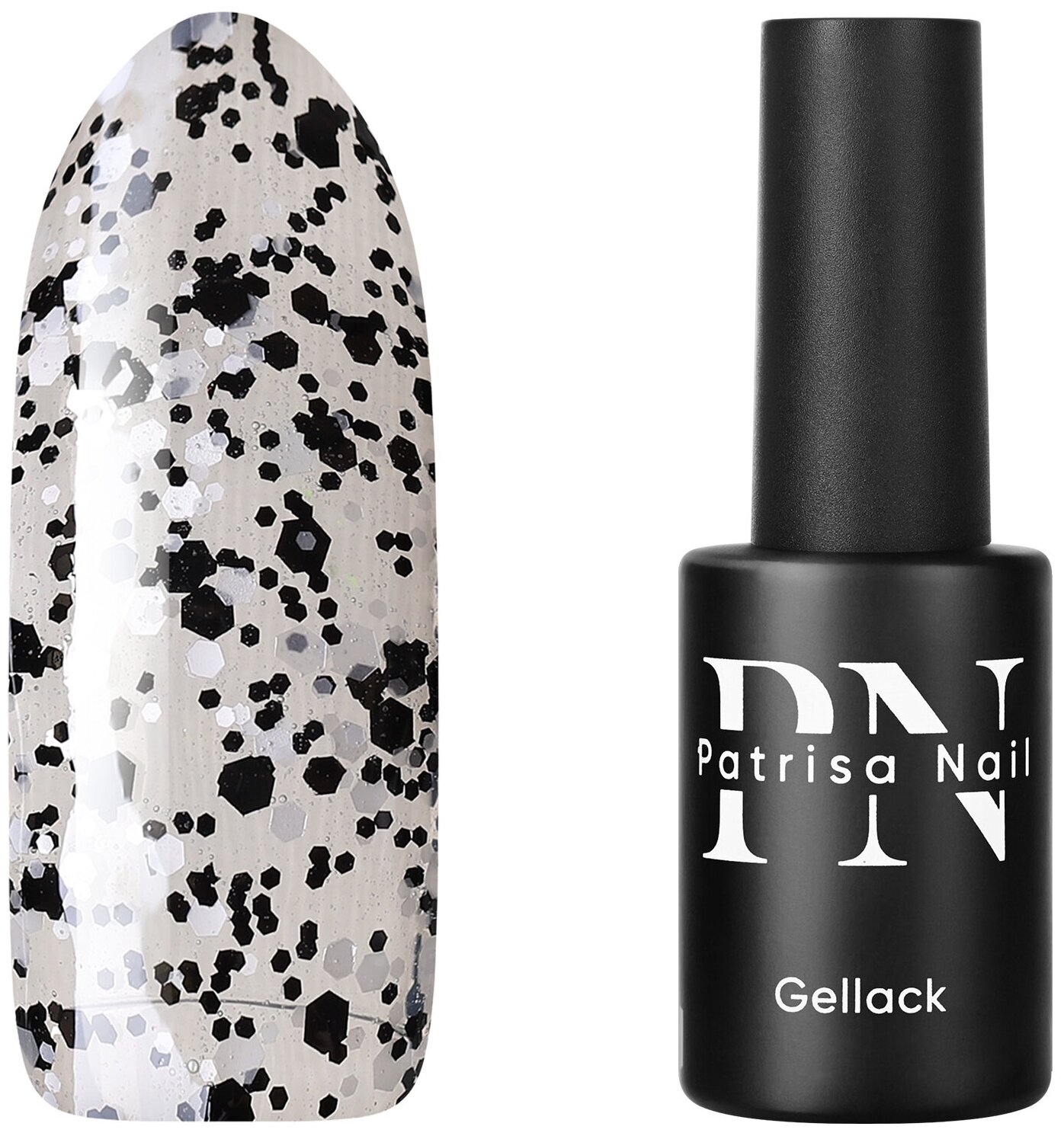 Patrisa Nail, Гель-лак Авангард №364, 8 мл (на прозрачной основе, с черными и белыми блестками разной величины, полупрозрачный)