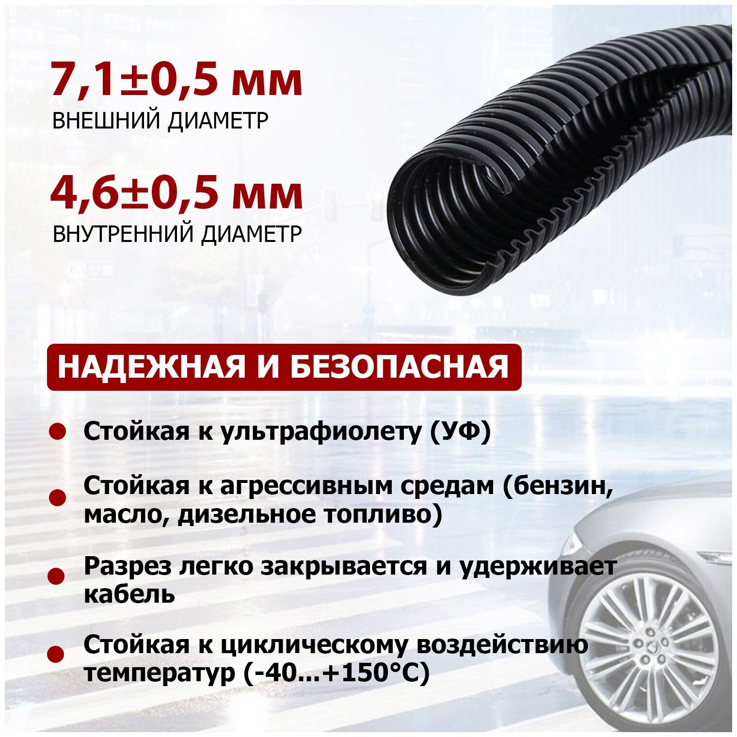 Труба автомобильная гофрированная REXANT ПП Ø4,7 мм, разрезная, 10 метров в бухте