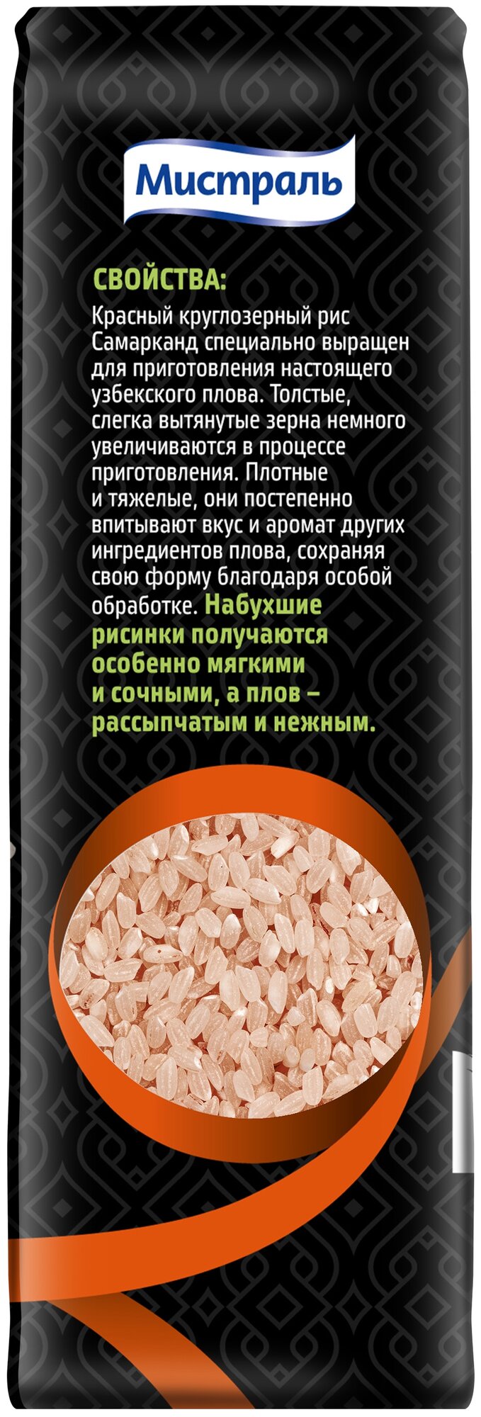 Рис Мистраль Самарканд для плова по-узбекски красный круглозерный шлифованный, 500 г