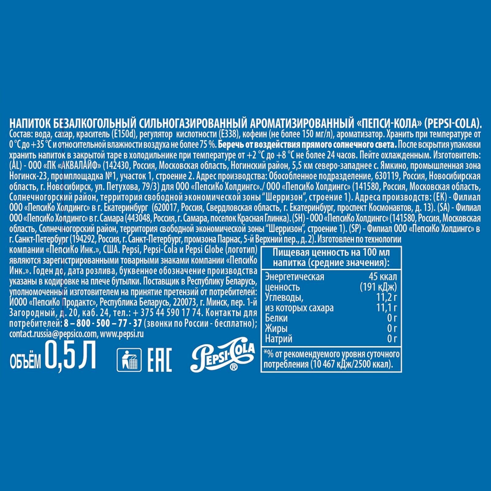 Газированный напиток Pepsi Cola, 0.5 л, пластиковая бутылка