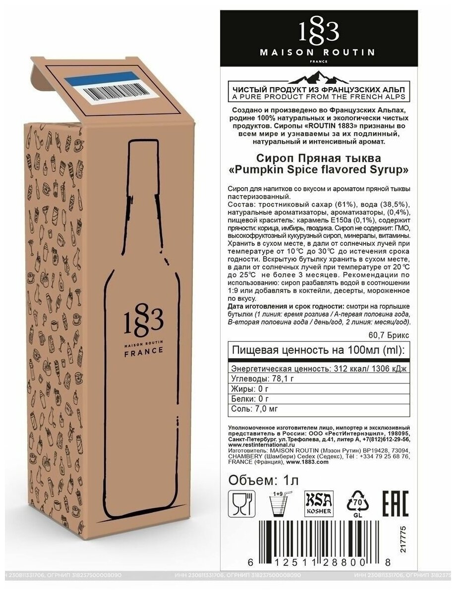 Сироп 1883 Maison Routin Пряная тыква, 1 л интересное: