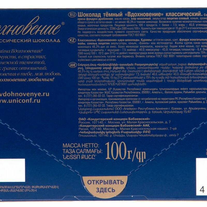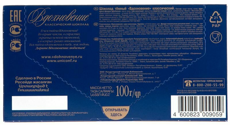 Шоколад "Вдохновение", Россия, вес нетто 100