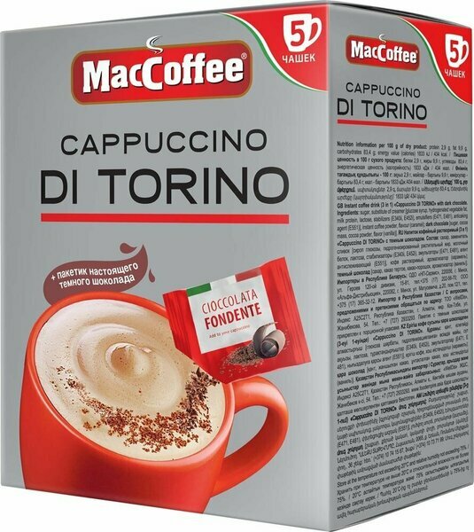Купить Напиток кофейный растворимый Cappuccino di Torino т.з. "MacCoffee" карт/уп 25,5г 5 пакетиков в упаковке