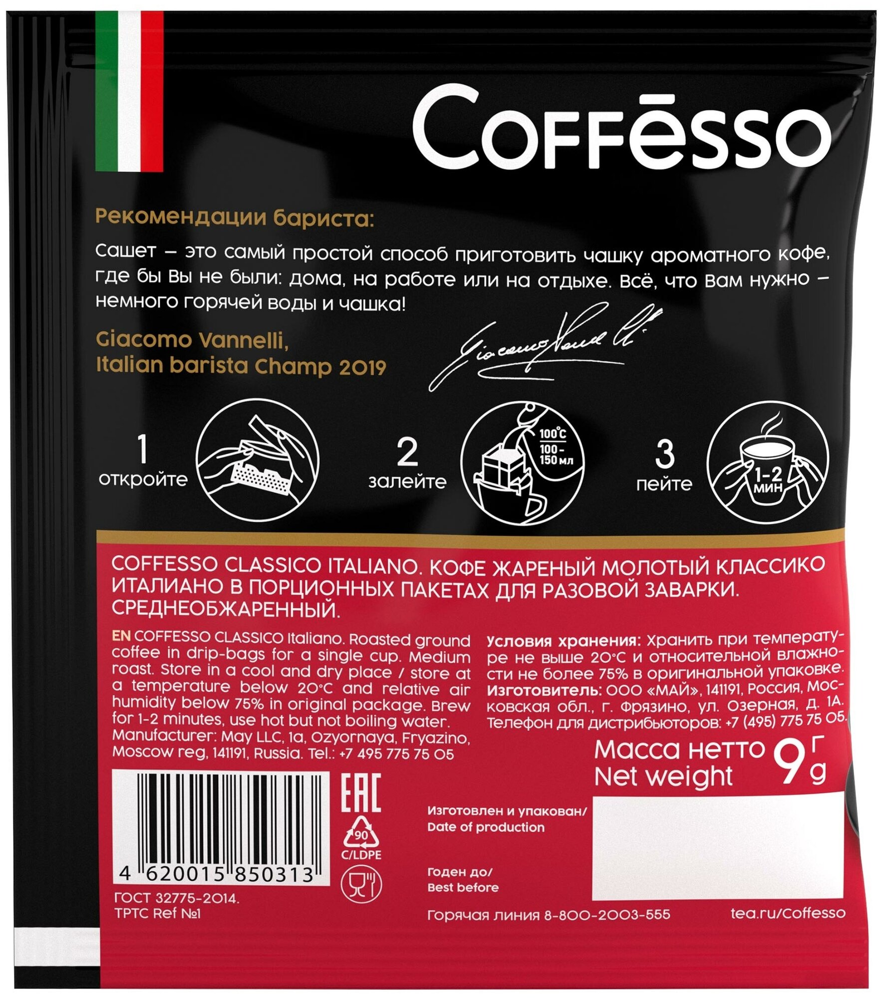 Молотый кофе Кофе Coffesso Classico Italiano, в дрип-пакетах, 5 уп., 45 г