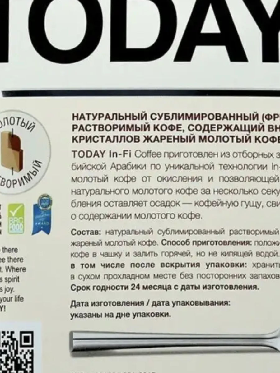 Ниже Вы можете прочитать отзывы на Кофе молотый в растворимом TODAY In-Fi 75 г, ознакомится с подробными характеристиками, посмотреть интересные обзоры и фотографии на Кофе молотый в растворимом TODAY In-Fi 75 г.