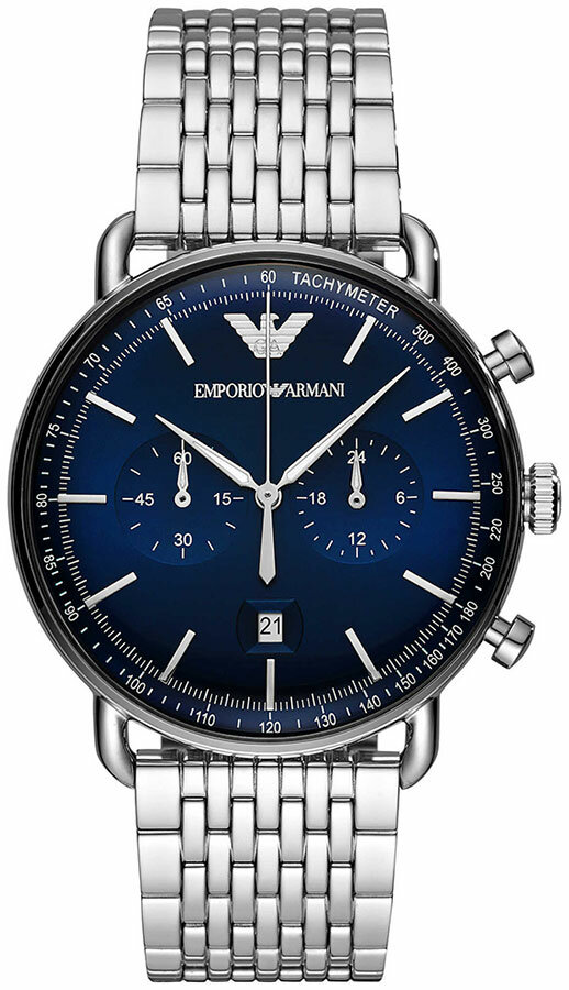 Наручные часы EMPORIO ARMANI Aviator, серебряный, синий