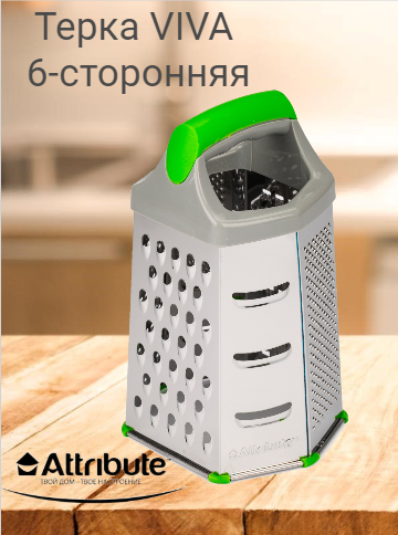 Терка ATTRIBUTE VIVA Grey Green 6-ти гранная универсальная без поддона нерж.сталь, пластик