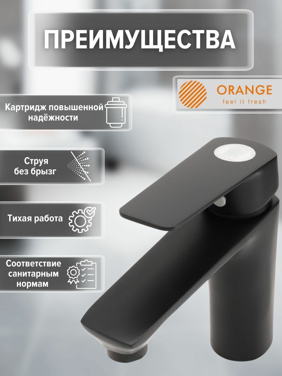 СохранитьСмеситель для раковины в ванную комнату, латунь, фиксированный излив Orange Aristo M19-021b, черный интересное: