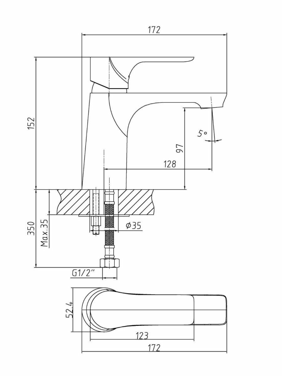 Смеситель для ванны короткий излив Bravat Rhein F6429564CP-01-ENG