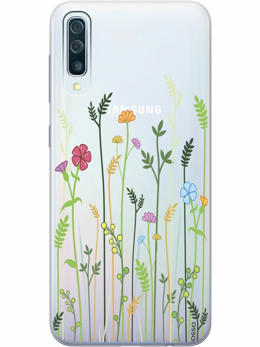 Купить Ультратонкий силиконовый чехол-накладка Transparent для Samsung Galaxy A50 / A50s / A30s с 3D принтом "Flowers & Fern"