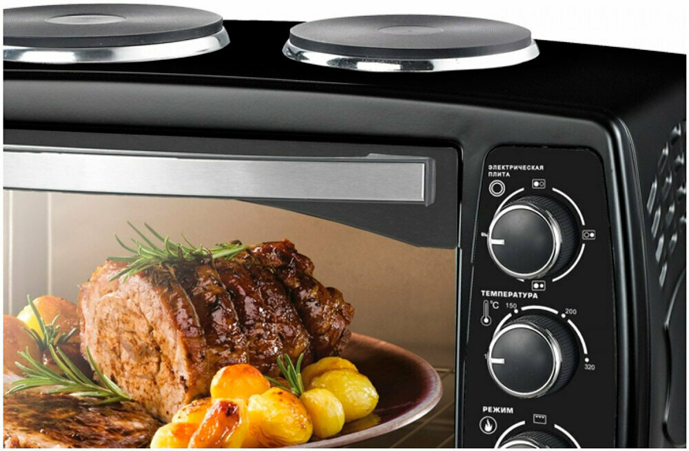 Печка электрическая/мультипечь CT-1531-42 (черн) 42л, плита на 2 конфорки