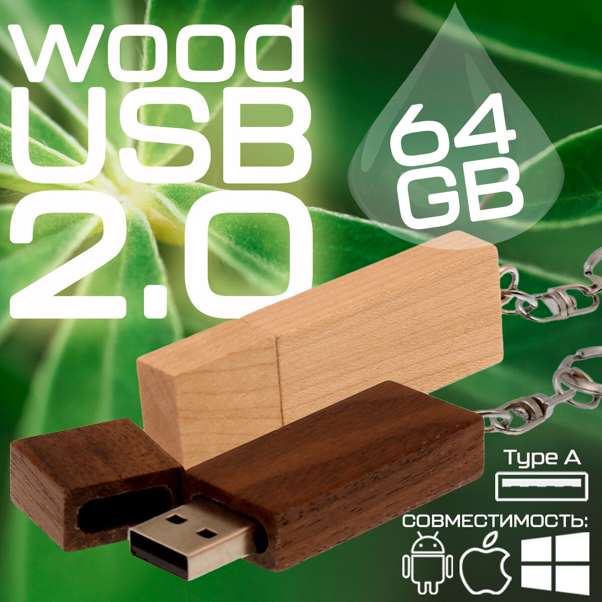 Прямоугольная деревянная флешка Woody с магнитным колпачком (128 Гб / GB USB 3.0 Белый/White Wood2 Флеш-карта Прямоугольник)
