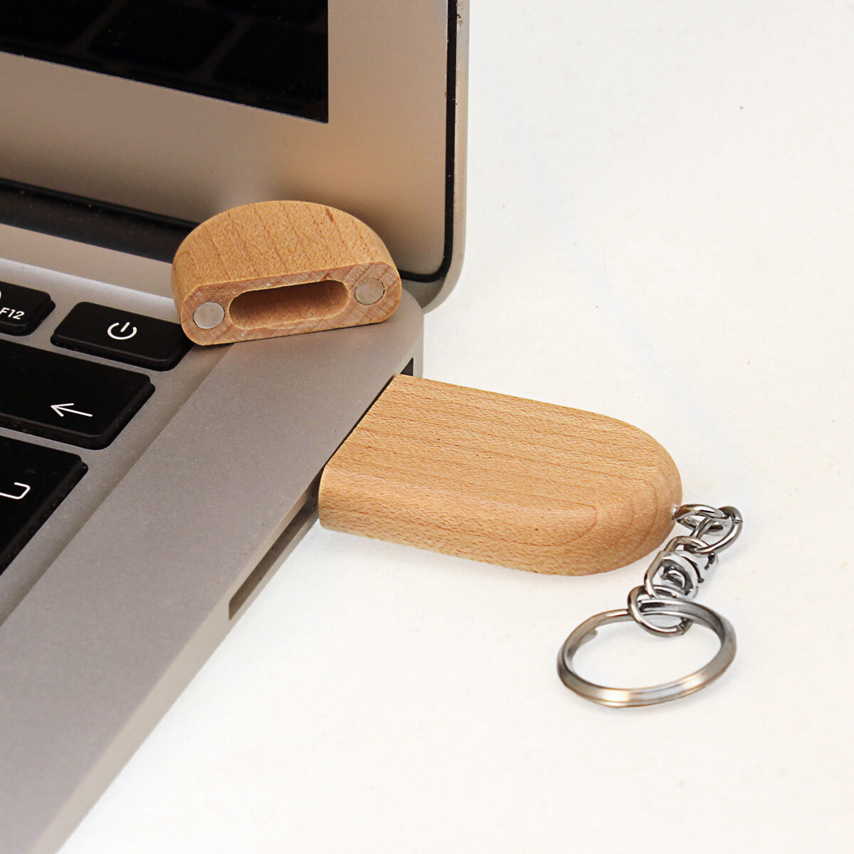 Овальная деревянная флешка с магнитным колпачком (128 Гб / GB USB 2.0 Белый/White Wood1 Для школьного фотоальбома)