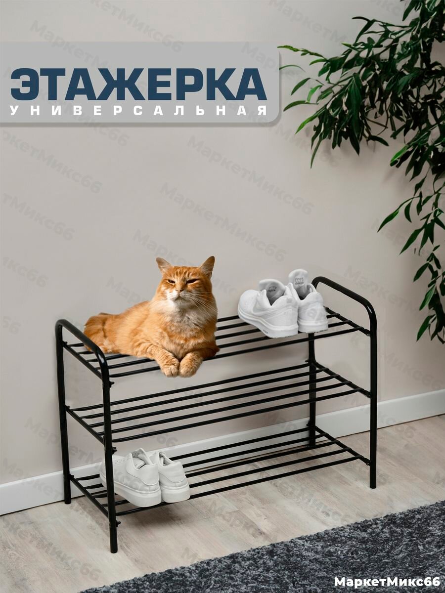 Полка для обуви, металл, 3 секции, 80х33х59 см, черная, Nika, ЭТК3/Ч