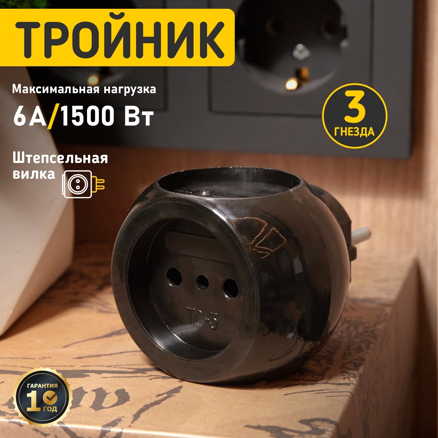 Тройник электрический REXANT "Шар" 220 В, 6 А, черный