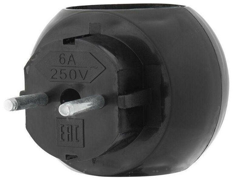 Тройник электрический REXANT "Шар", 6 А, без з/к, черный