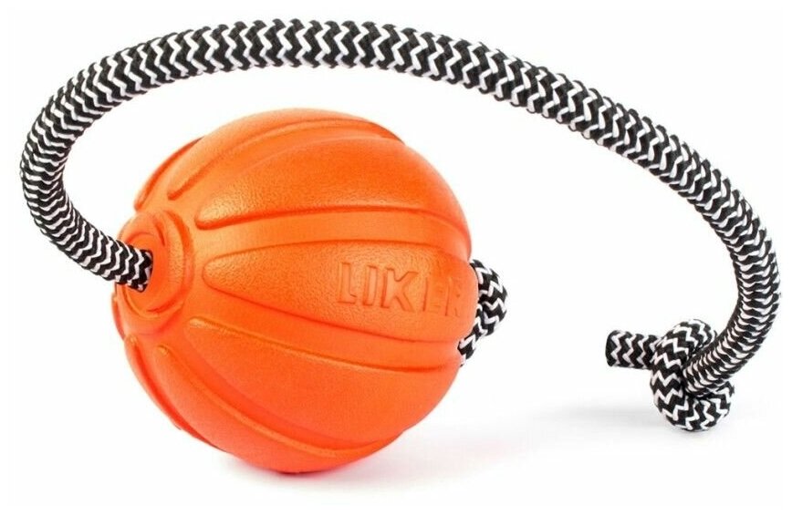 Мячик для собак LIKER Мячик Лайкер Корд на шнуре (6297), оранжевый интересное: