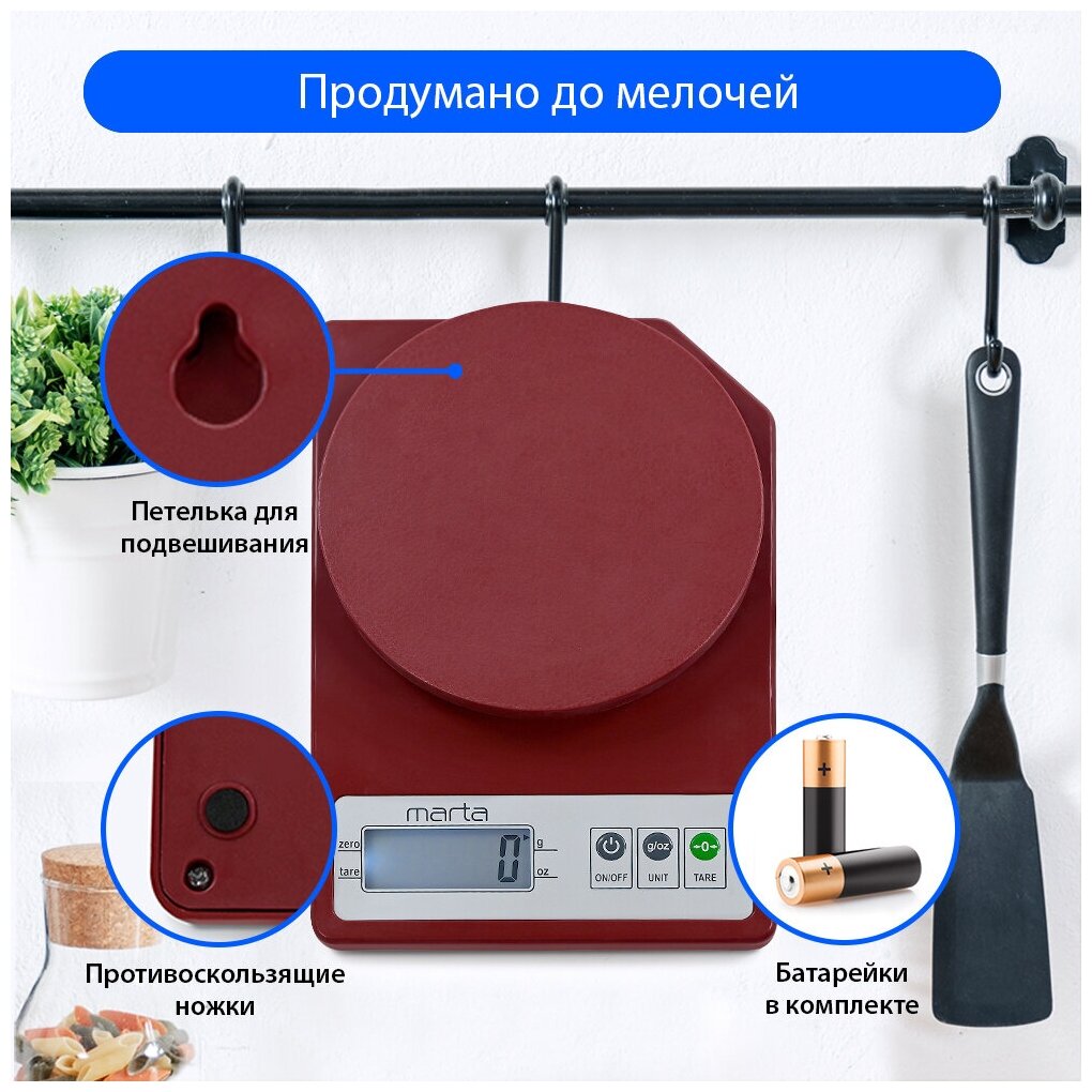 Весы кухонные MARTA MT-1637, бордовый гранат