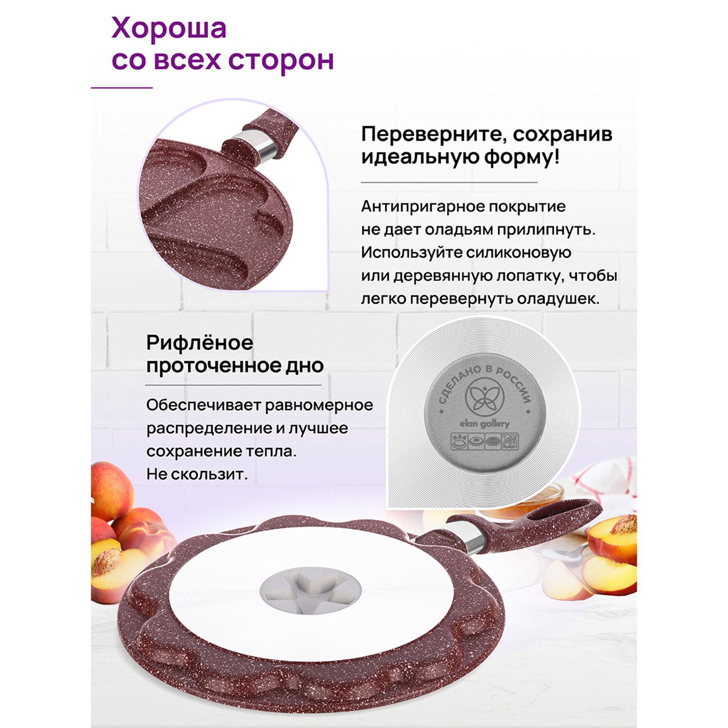 Сковорода для оладий 26 см Elan Gallery гармония вкуса Рубин сердце, несъёмная ручка интересное: