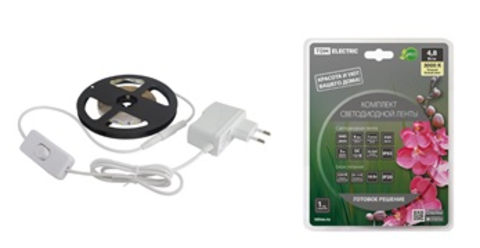 10-21 Комплект светодиодной ленты 12В, 4,8Вт/м, smd3528, 60 д/м, 280 лм/м, IP65, 2,5м, коннектор, БП, т/б