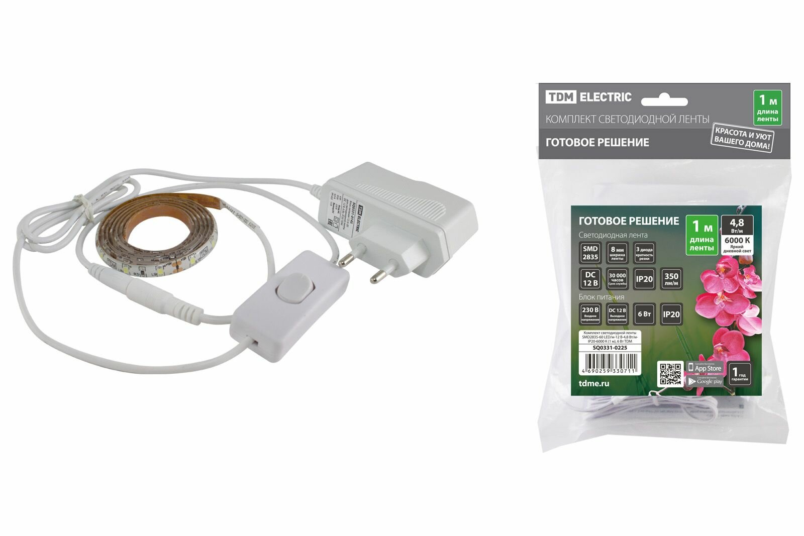 Комплект светодиодной ленты SMD2835-60 LED/м-12 В-4,8 Вт/м-IP20-6000 К (1 м), 6 Вт, TDM SQ0331-0225 (1 шт.)