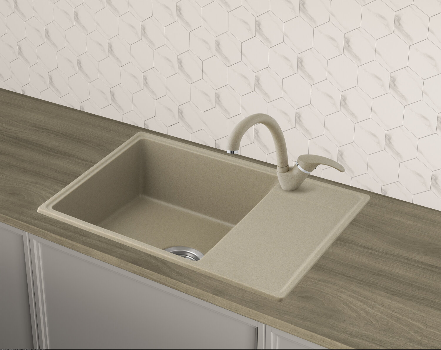 Кухонная мойка Карельский камень модель 150 (575*470) Q6 Слоновая кость