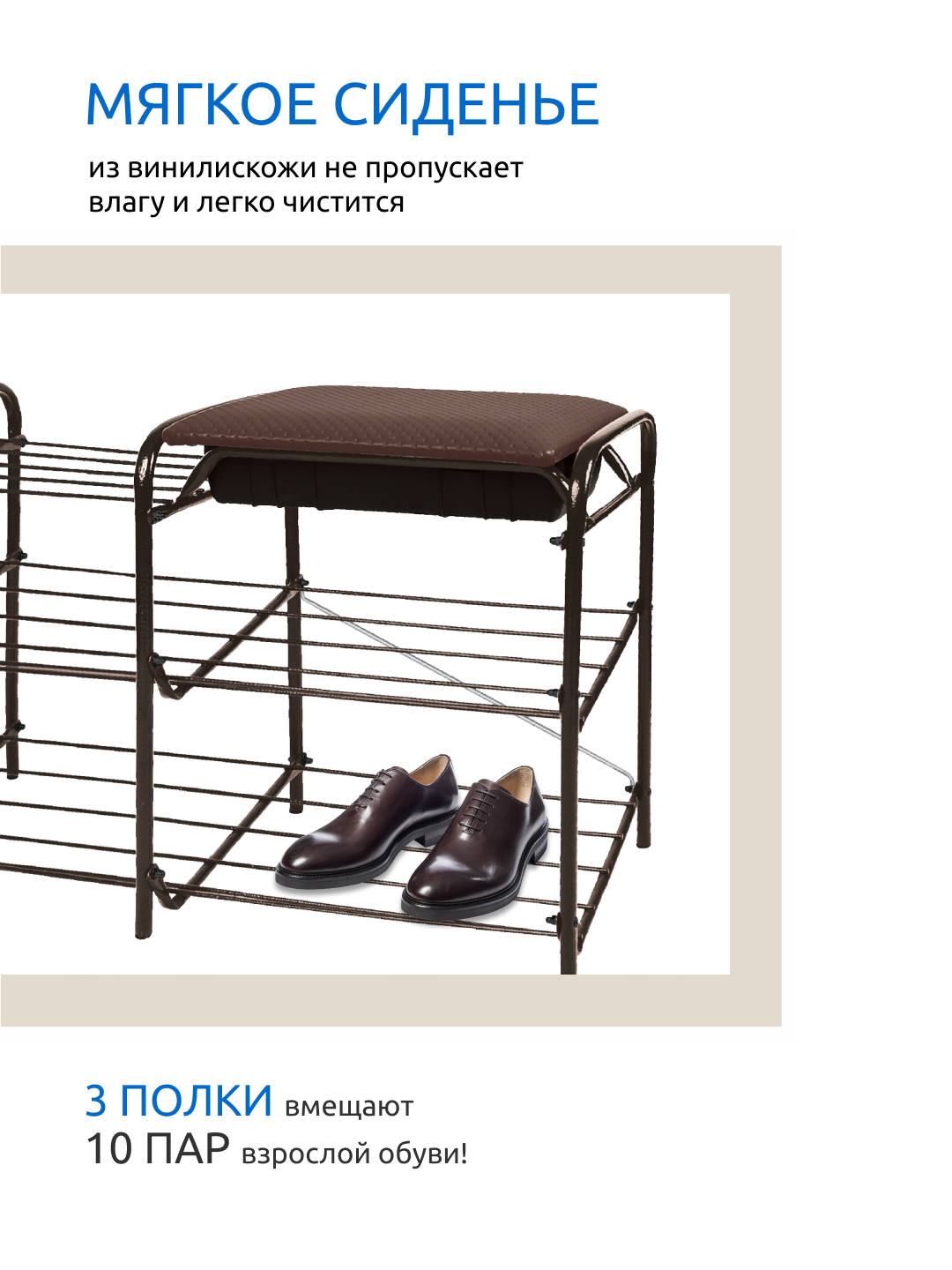 | Отзыв: | Хороший размер, удобно размещать обувь и обуваться-разуваться сидя. |