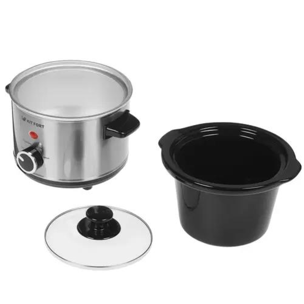 Медленноварка KITFORT КТ-205, 120Вт, серебристый/черный
